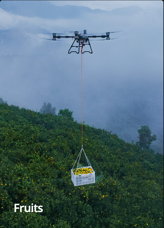 The T100 transforms into a transport solution. With a lifting maximum capacity of 100 kg[5]. Features like auto balance control , weight detection, and automatic navigation to loading and unloading points make it adaptable to various agricultural transport scenarios.