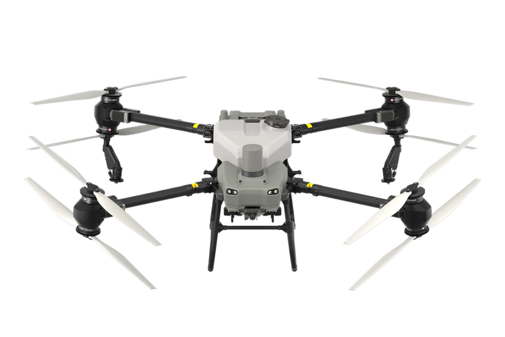 DJI AGRAS T50 elevates drone agricultural operations to new heights. It inherits a powerful coaxial twin-rotor propulsion system and a split-type torque resistant structure for next level stability when carrying 40 kg spraying[1] or 50 kg spreading[1] payloads.