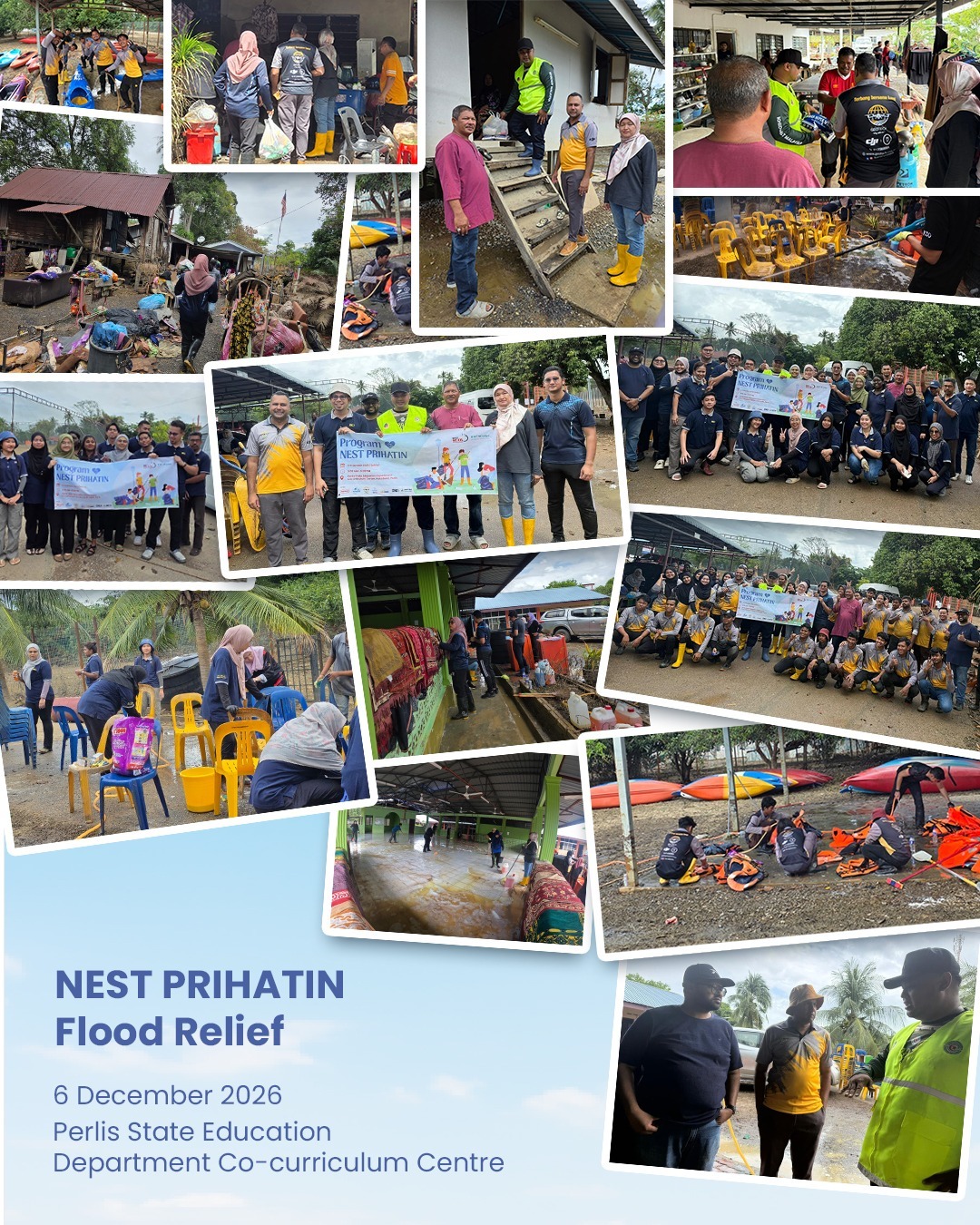 The NEST Prihatin Flood Relief Programme was held on 6 December 2025 at the Perlis State Education Department Co-curriculum Centre, Kaki Bukit, Perlis, from 9.00 AM to 5.00 PM. The programme was organised by NCER NEST and Knowledge Group of Company (KGC) as a coordinated humanitarian initiative to support communities affected by the recent floods.